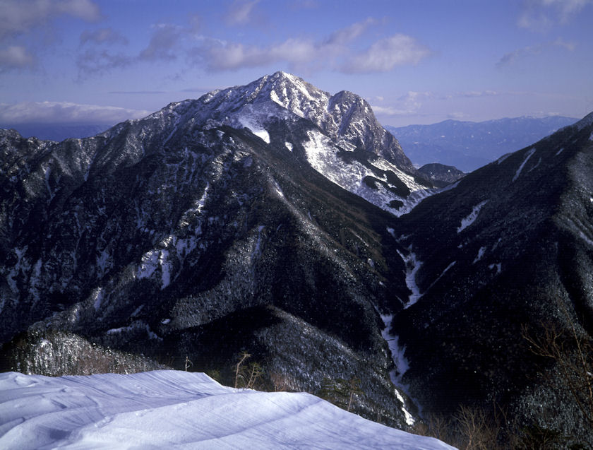 甲斐駒ケ岳 初めての冬山 南アルプス北部は長野県長谷村戸台から入ります朝6時頃出発して北沢峠(長野県 と山梨県の県境)にお昼ぐらいに着きます夏山では見られない冬の世界が見えます、ここから仙水小屋まで後もう一息 写真は駒津峰から、ここから頂上まで1時間半位で到着。