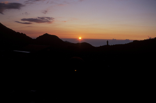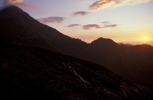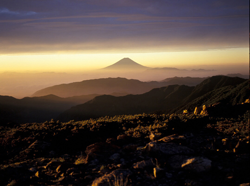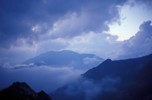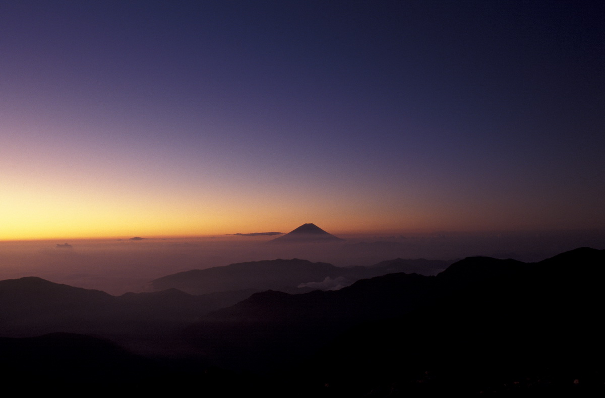 最後に南アルプス北岳は26歳の時に始めて登りました、先ほど書きましたが日本最高峰第2位、北アルプスの穂高より高い!また夏は甲府からバスで2時間にて南アルプス登山基地の広河原に着きます、そして東京から近い! 写真の方はここに有るのはいっぺんに撮れたのではなく20年近く登って撮ってきました、ある時は広河原で雨に降られ断念、また白根御池小屋のテント場から北岳稜線を見ると梅雨前線の黒い雲で覆われ登ると北風と横方向の雨であろうと判断し下山、北岳の稜線のテント場で一晩中雨にたたられ下山!あと南アルプスス-パ-林道が梅雨の大雨で崩壊し1年間甲府側から入れませんでした。(この時は八ヶ岳に行く)次の年は長野県側から入り仙丈岳に登りました、この時も関東地方は大雨でした。なぜここまで南アルプスにこだわるのか?それは北岳領線上から見た雲海上に落ちていく夕日を見たからです、今でも忘れられません!また話は変わりますがその帰り白根御池小屋から広河原までの下山途中かなりご年配の夫婦のお二方に会う、木の杖を突きつつ下山中、当方が追い越すまで足を止めていてくれました、有難うございますと挨拶を交わし下山、私も何時まで山に登れるのかな!?と考えに耽った事を思い出します。