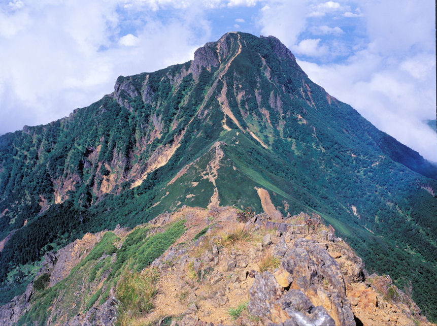行者小屋のテント場よりちょうど雲が切れた瞬間でした